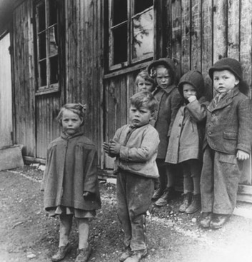 Sur le front de l’Est en revanche, la campagne-éclair menée en Pologne en septembre 1939 par les forces allemandes s’accompagne d’atrocités envers les hommes, les femmes et les enfants. La destruction physique sans pitié de l’ennemi, revendiquée par Adolf Hitler, réserve un sort particulier aux jeunes femmes et aux filles polonaises qui ont survécu aux premiers bombardements et incendies : un nombre significatif d’entre elles sont capturées, violées en masse, puis exécutées ou exploitées sexuellement dans des colonies agricoles ou des bordels militaires allemands. Du côté soviétique, des événements similaires se produisent. Quelques semaines plus tard, l’attaque de la Finlande par l’URSS conduit au déplacement de dizaines de milliers d’enfants vers d’autres pays nordiques (principalement Suède, mais aussi Norvège et Danemark), pas encore belligérants. À partir du mois de mai 1940, la guerre et ses terribles réalités frappent pleinement l’Europe occidentale. Les bombardements de terreur sur certaines localités et l’intense offensive menée par l’armée nazie en Belgique, en France, au Luxembourg et aux Pays-Bas poussent de nombreuses familles à se réfugier. Ainsi, près de 9 millions de personnes alimentent un immense mouvement de population, entraînant la pagaille et la panique dans la société. De nombreuses familles sont dispersées dans la désorganisation la plus totale ; la Croix-Rouge française fait état de 90 000 enfants perdus à l’été 1940. Durant cette période de débâcle, de nombreux enfants se trouvent livrés à eux-mêmes, subissant les privations de nourriture, d’eau, de logement, d’habits… Pour celles et ceux qui parviennent à échapper aux zones de combat et à trouver des hébergements plus au sud, la rupture avec l’espace, les habitudes et les rythmes du quotidien est néanmoins profonde. Quels que soient leurs sorts, les enfants doivent prendre des responsabilités supplémentaires pour aider ou se substituer à leurs parents, doivent quitter l’école et travailler, recourir au vol ou au marché noir selon les situations… Dans de nombreux pays, l’acquisition de nourriture devient un enjeu majeur, avec le rationnement et le développement progressif d’une alimentation de guerre (rutabagas, topinambours, farines et huiles de marrons d’Inde…). Les conditions de vie sont précaires mais l’un des impacts les plus spectaculaires dans la vie des enfants concerne la modification des lieux et des programmes scolaires pour inclure la propagande.